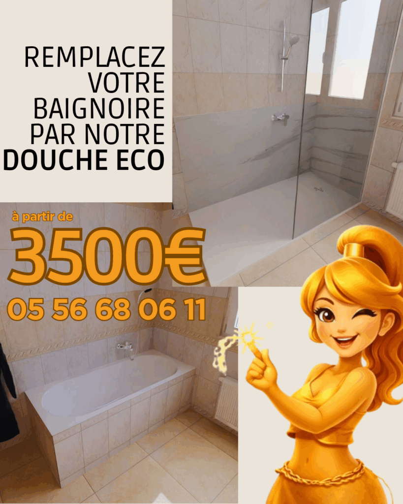 Remplacement de Baignoire Gironde, à partir de 3500€ TTC : Douche Sécurisée PMR